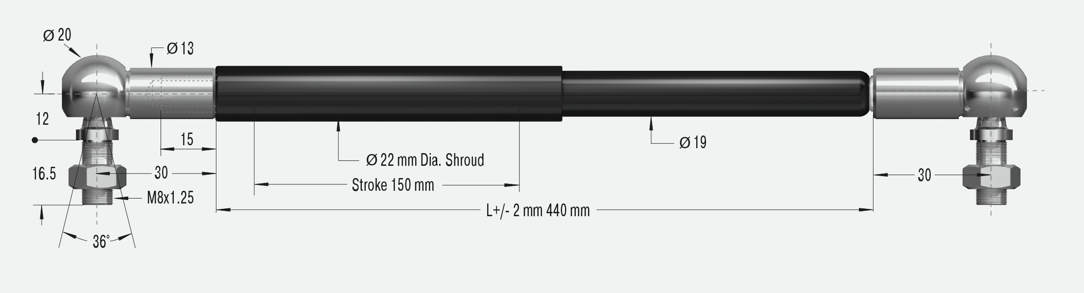 Industrial Gas Springs – Push Type GSG-19-150-CC-300N