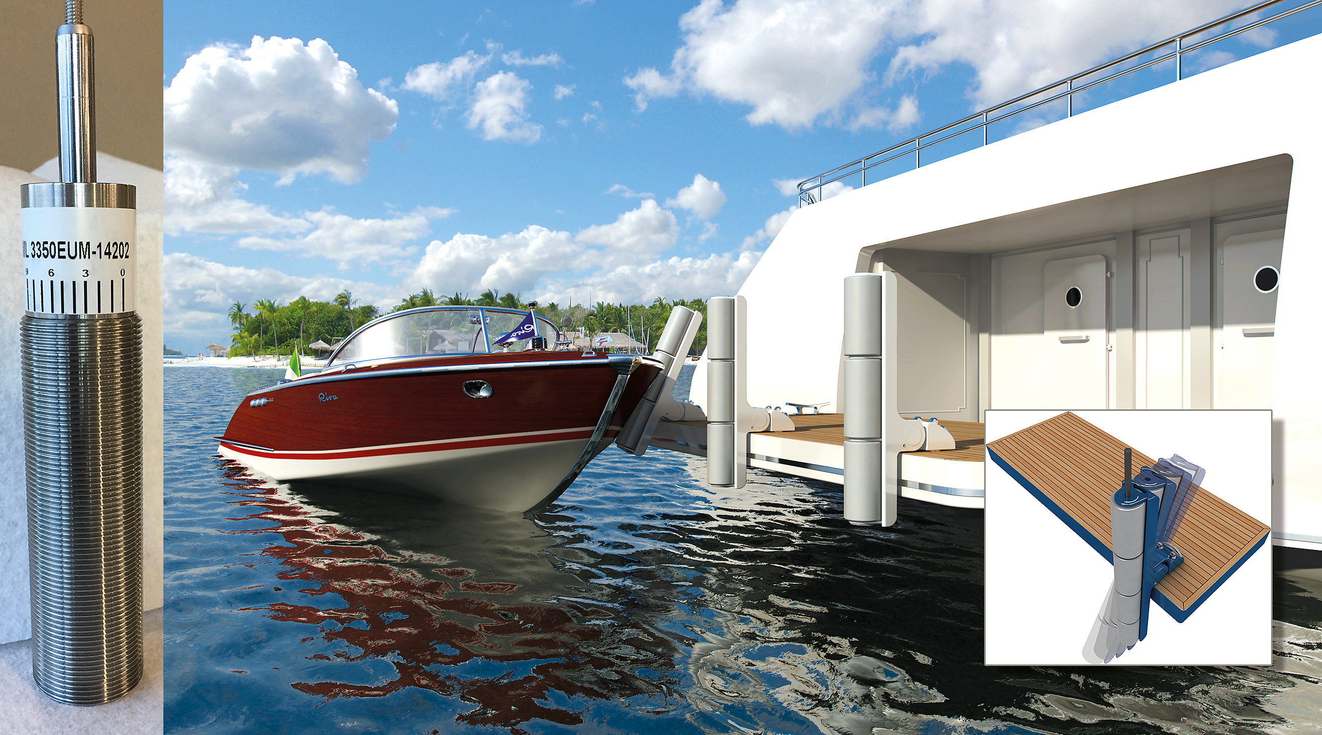 Fenders protect ships from collision damage during berthing manoeuvres. So that yachts can also survive soft and ungentle touches with other boats or jetties, ACE has worked with a customer to design ideally suited, adjustable stainless steel versions of MAGNUM industrial shock absorbers MA/ML and bring them to series production readiness. The previous solution was discoloured by penetrating salt water, which had no effect on the functionality of the fenders, but looked unsightly. The new complete package works both technically and visually to the complete satisfaction of even the most demanding yacht owners.