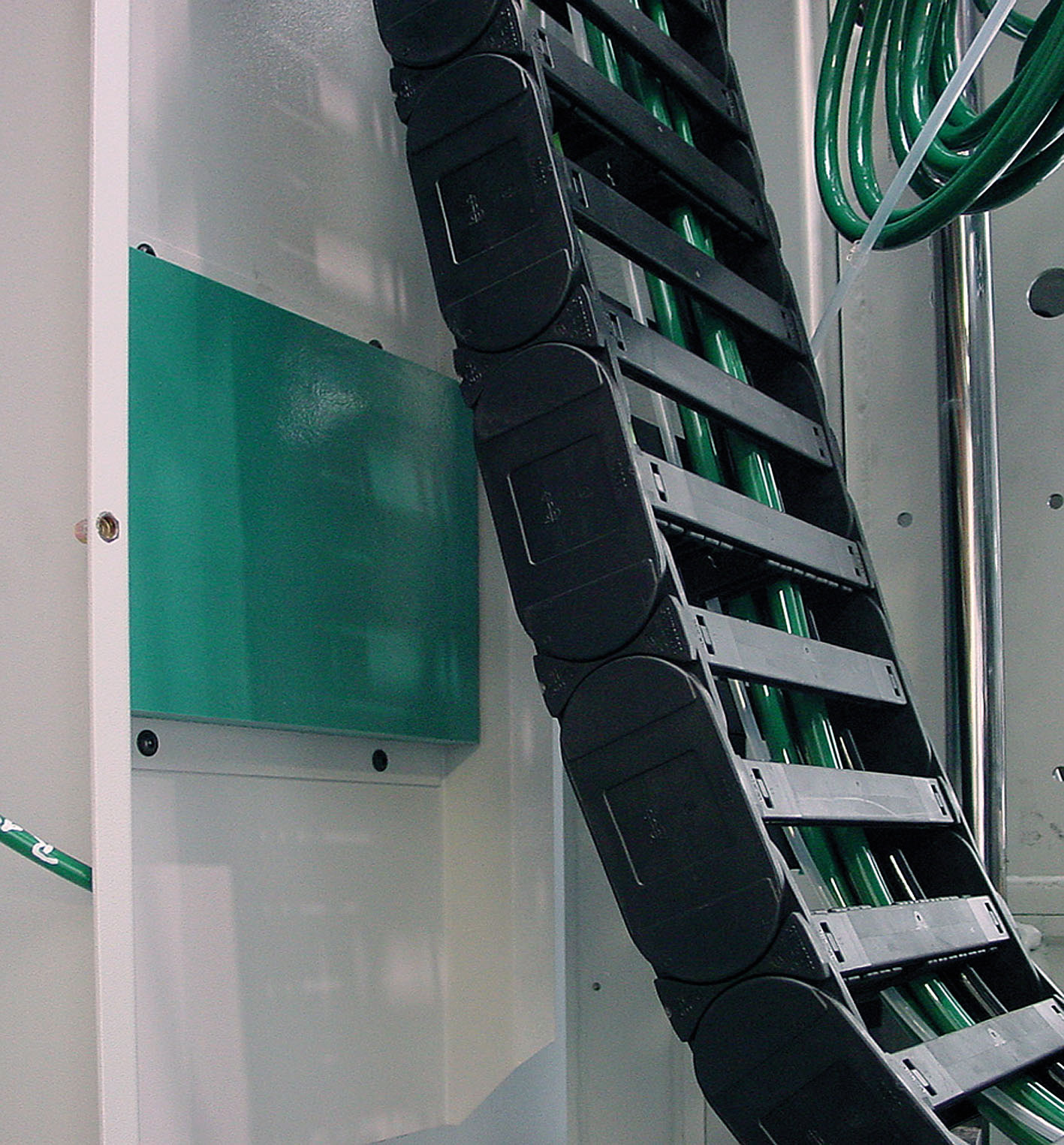 Significant noise and impact relief of moving cable trailing elements in milling machines by using SLAB damping plates