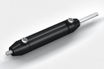 End position damping for hydraulic cylinders in test systems In a testing facility for vehicle tanks, the test specimens are pulled out of the water with a support arm. A hydraulic cylinder carries out the swinging movement and is attenuated in the end position by two TUBUS TR85-50. Even if this work could be taken over by other absorber solutions, the energy balance clearly speaks for the benefits of the profile dampers: they are inexpensive, they save space, they are free of leaks due to solid construction and are suitable for underwater functions in the test pool.