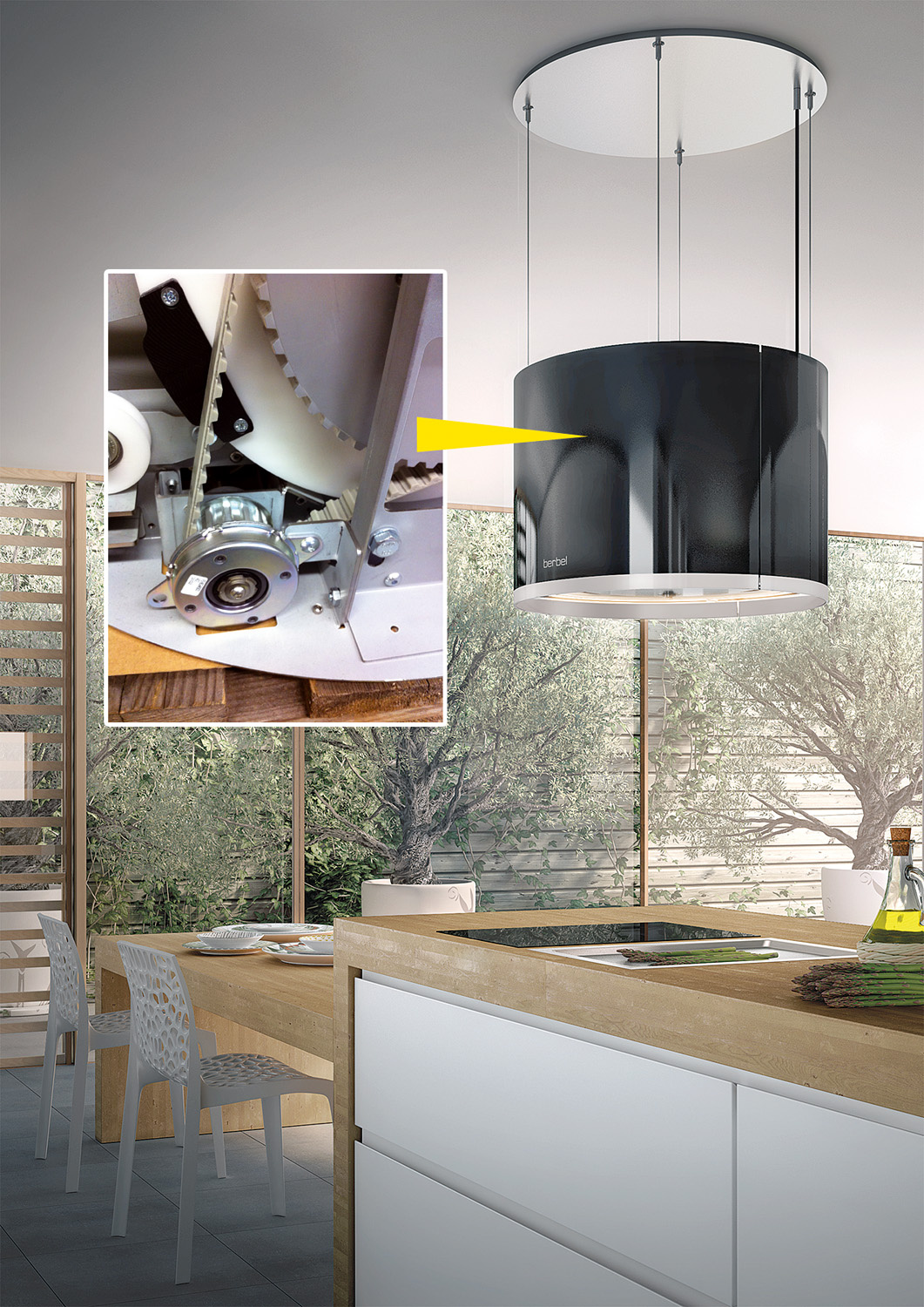 For ergonomic handling, modern cooker hoods can be driven by a motor into an up position and then down again. When driven downwards, an AC load can result in a total loss through current being fed back into the voltage source. One of the tasks of the ACE FDN rotary dampers is to prevent this. The modern machine elements are also built to provide protection against motor failure. Sliding the hood down too quickly could lead to further costly damage to the hood and the ceiling console and even cause personal injury.