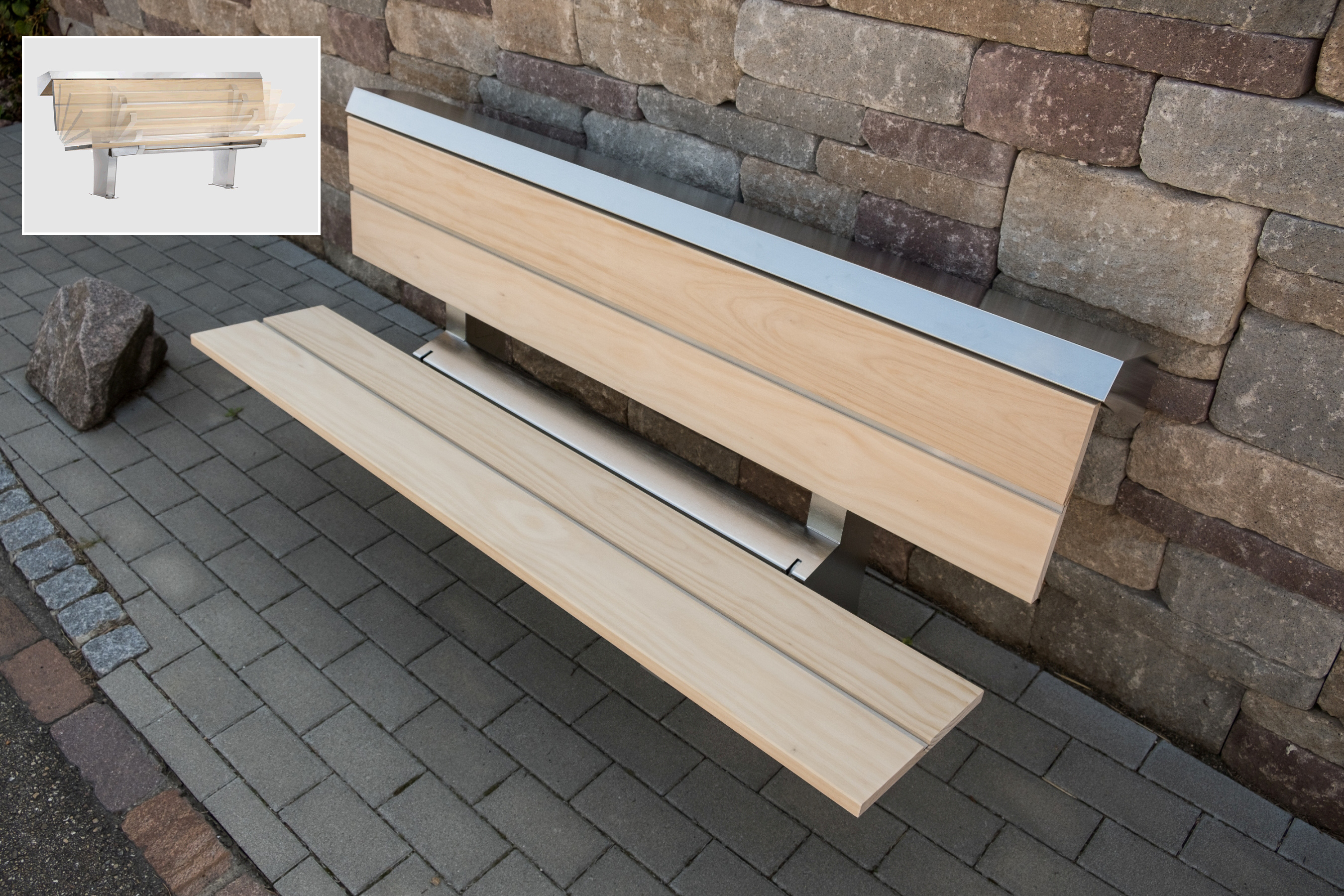 High quality park bench stays dry and saves space due to ACE industrial gas springs