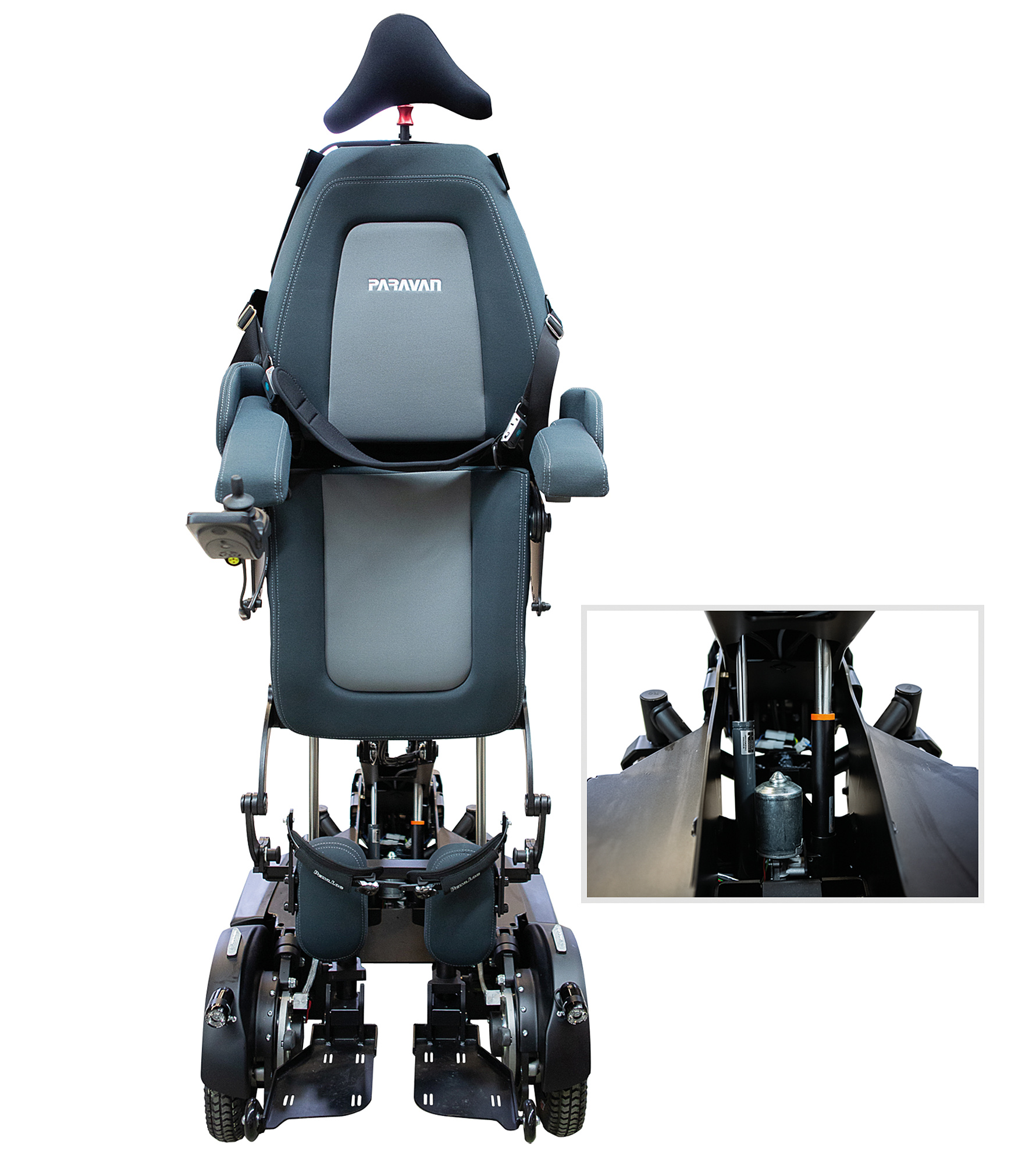 In the PR Biolution stand-up wheelchair from PARAVAN, the movement sequences are designed to glide as smoothly as technically possible with the help of industrial gas pressure springs from ACE, making them as comfortable as possible for the patients