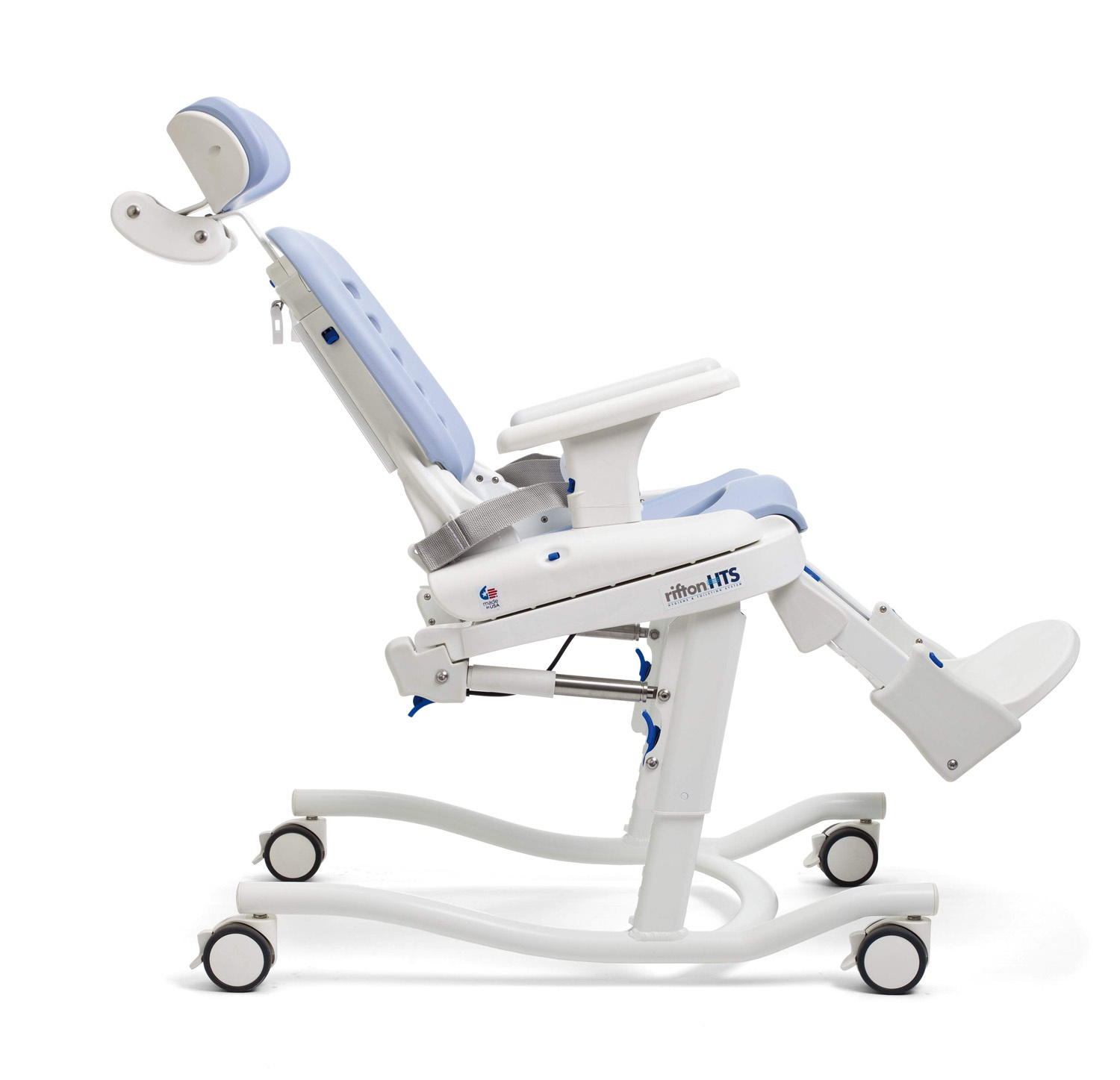 A special hygiene and toilet chair, designed for children and young people with disabilities, must be firmly lockable in the sit and tilt positions. The practical aid thereby provided for relatives and carers can be attributed to two lockable ACE industrial gas springs (push type) which were especially developed and manufactured for this application and operate on the basis of the so-called tilt-in-space function. This allows the chair to be tilted forwards and backwards and provides significantly more convenience for users and patients. In order to meet all hygiene requirements, the gas springs are constructed in stainless steel.