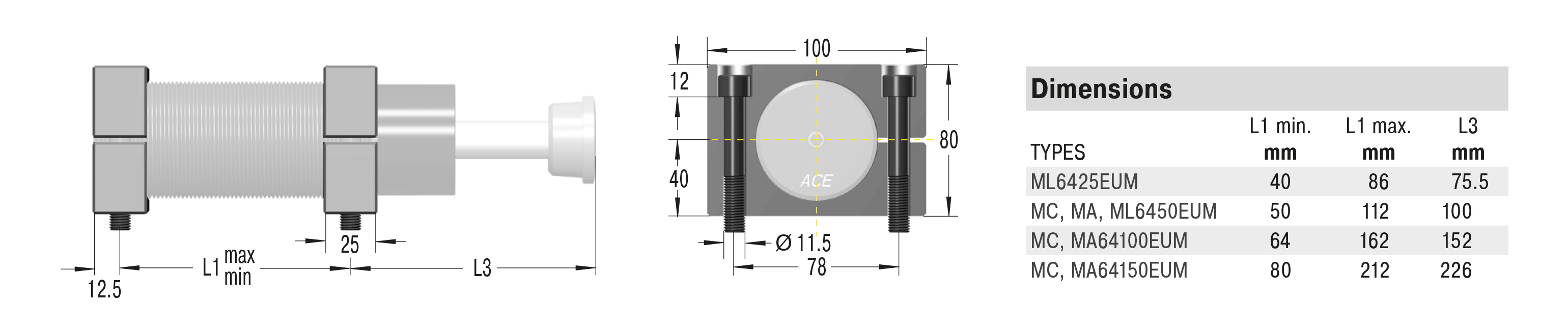 A noise reduction of 3 dB to 7 dB is possible when using the special impact button (PP). For emergency use only applications and for continous use (with additional cooling) it is sometimes possible to exceed the published max. capacity ratings. In this case, please consult ACE.
