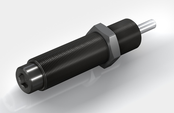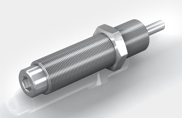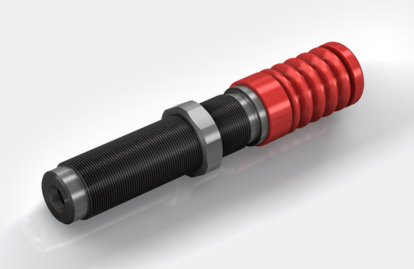 Soft damping, but enormous capacity: The range of 'soft contact' absorbers SC²25 to SC²190 extends from thread size M10 to M14 and covers effective weight ranges of 1 kg to 1,550 kg.
