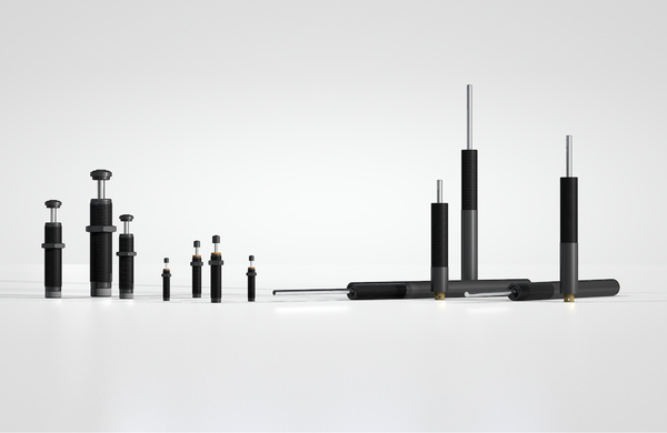The hydraulic dampers are similar in appearance to the ACE industrial gas springs but are adjusted in the end position and work differently to the DVC family with individual speed adjusters for the push and pull direction.