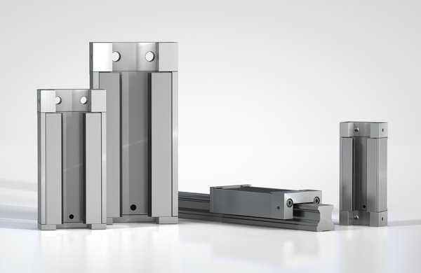 Always on the safe side: LOCKED PL process clamping elements clamp directly onto the clear area of guide rails on linear modules with forces of up to 10,000 N.