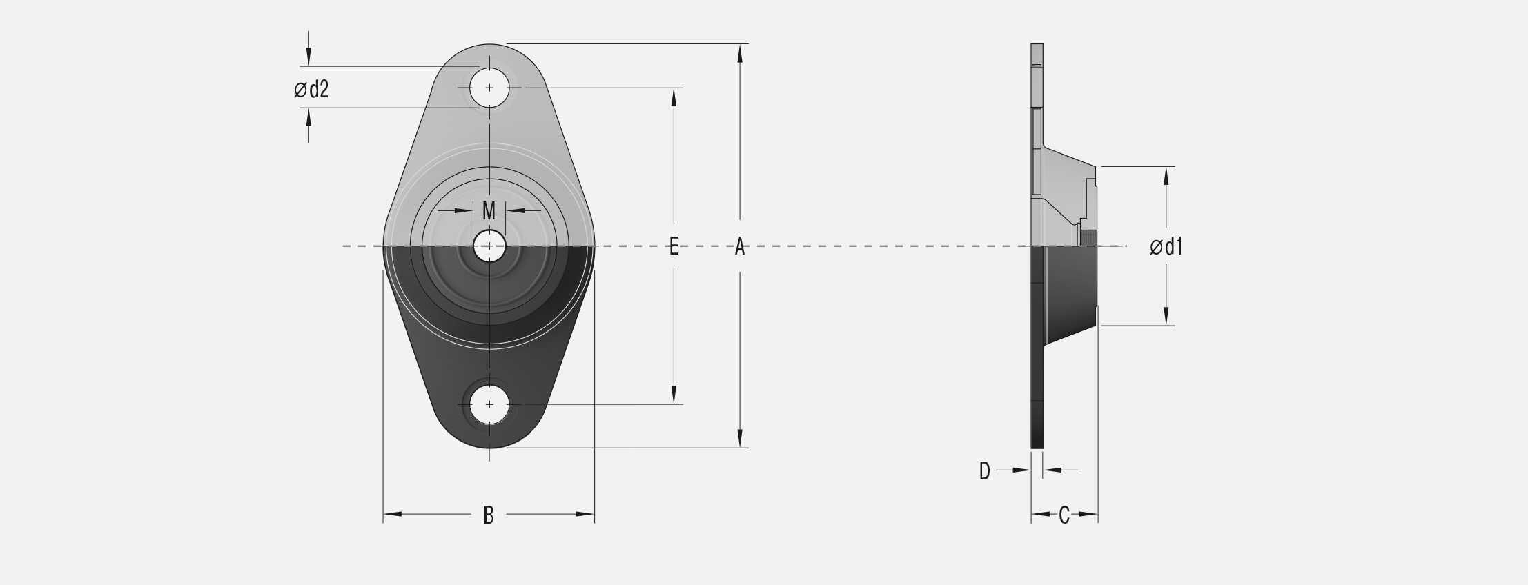 The heavy duty mount is normally used in vertical load applications - above all for industrial machines, small motors, pumps and compressors.